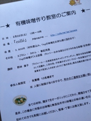 会費 : 3800円 (材料費込み、1kgの味噌をお持ち帰りいただきます。)
