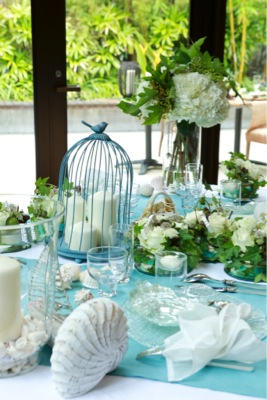 夜には、キャンドルも使ってロマンティックなコーディネートに。